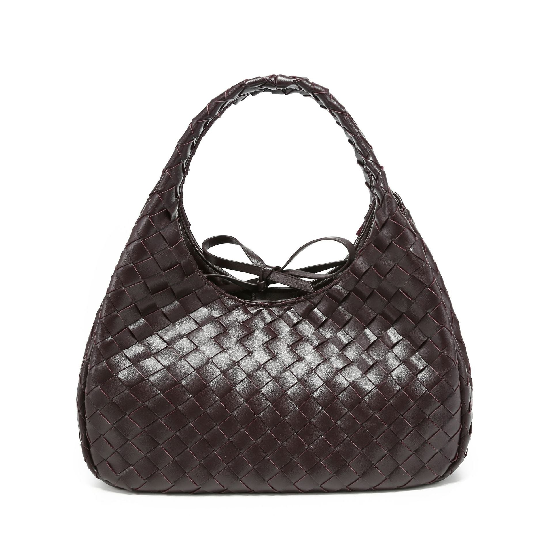 Bolsa de hombro tejida a mano con zipper en la parte superior.